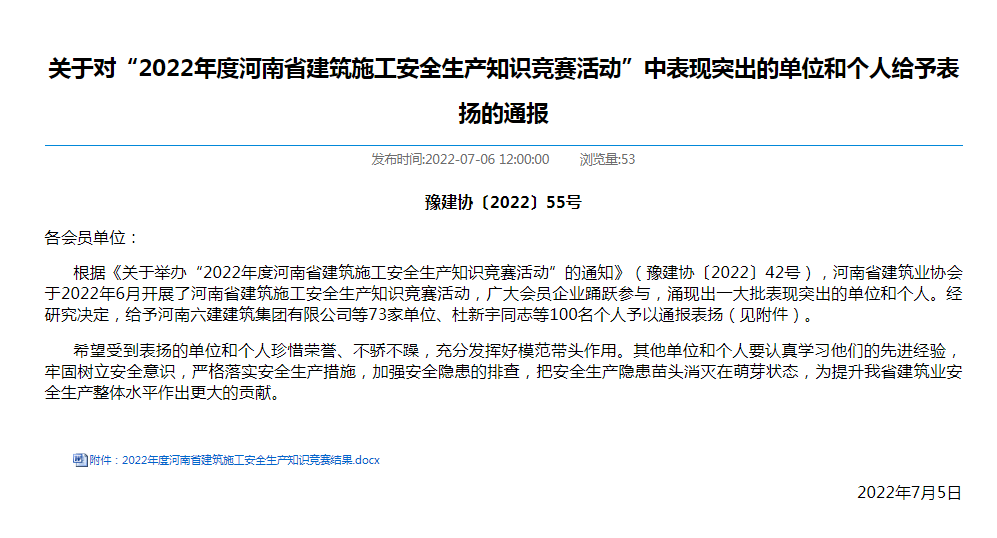 近日,河南省發(fā)改委、科技廳等五個(gè)權(quán)威部門聯(lián)合發(fā)文,公司企業(yè)技術(shù)中心獲批為 河南省企業(yè)技術(shù)中心,是繼2021年度獲批信陽市施工技術(shù)工程